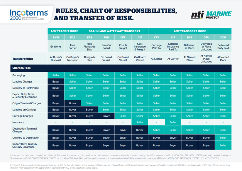 The Incoterms, or International Commercial Terms, are a series of predefined commercial terms published by the International Chamber of Commerce relating to international commercial law.