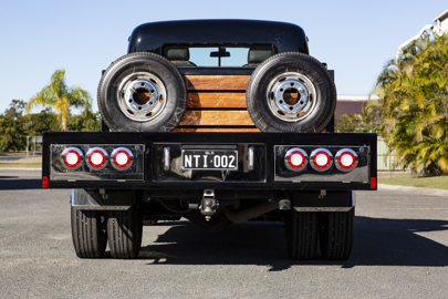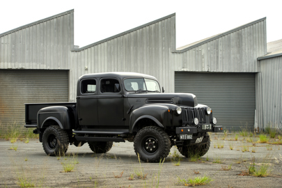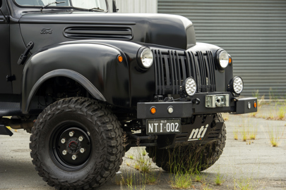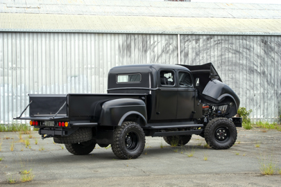Bonnie is a matte black 1946 Ford Jailbar Dual Cab 4x4; a truly one of a kind, amazing vehicle.