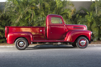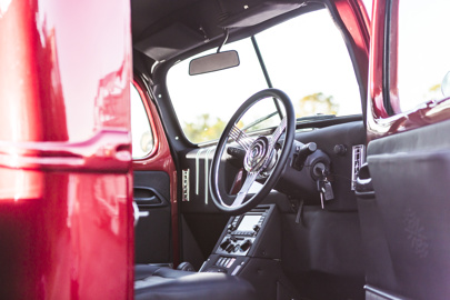 Roxanne, a nouveau red 1946 Ford Jailbar, was our second vehicle restoration. More than 50 suppliers, partners and industry affiliates helped us to combine a Jailbar and an Isuzu NLR donor, combining retro looks with modern running and conveniences.