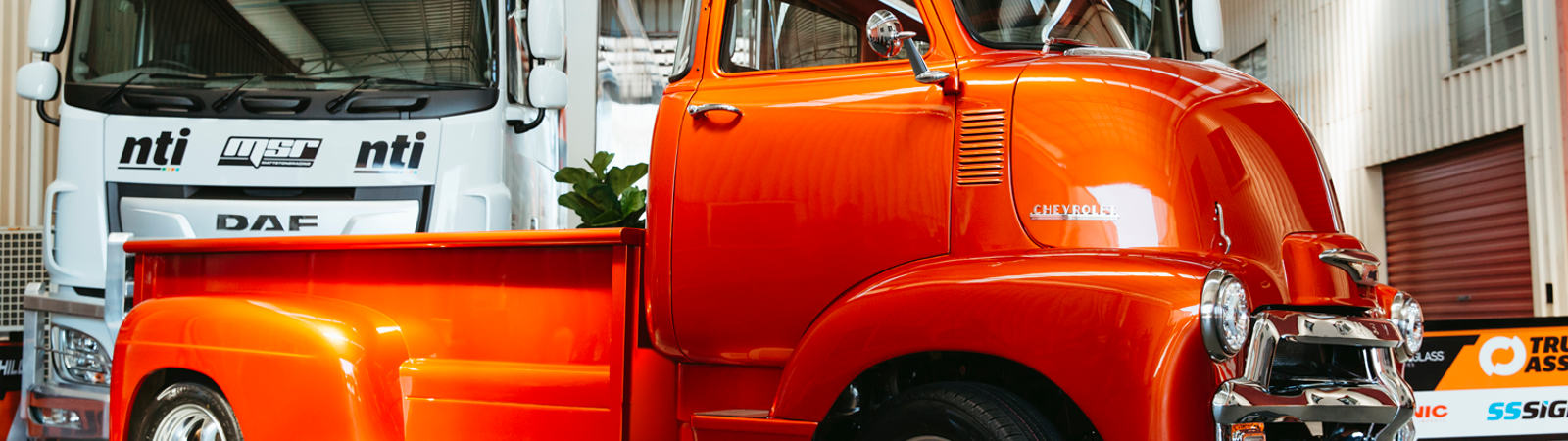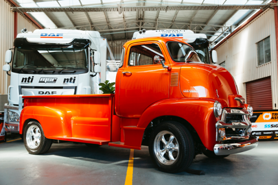 Daphne is a 1954 Chevrolet Cab Over Engine (COE) with a 2022 Chevrolet Camaro LT1 6.2-Litre Fuel Injected V8. Daphne’s newly restored hot lava orange bodywork and running gear make her quite the looker, and her unique engine makes her quite the performer. She’s a beauty, and a beast.