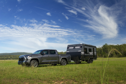 The Toyota Tundra boasts impressive features such as a 14" multimedia display compatible with Apple and Android devices, wireless phone charging, and Toyota's Safety Sense technology.